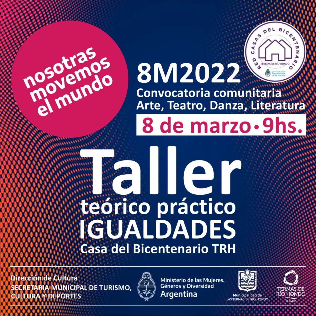 TALLER TEÓRICO PRÁCTICO “IGUALDADES”: 9:00 hs. Casa Del Bicentenario. Abordaremos los principales aspectos acerca de la #igualdaddegenero, fortalecimiento, roles y derechos de las mujeres en la sociedad actual a través de un conversatorio con reflexiones, debates y puesta en común, a cargo de la abogada Melania Layús.