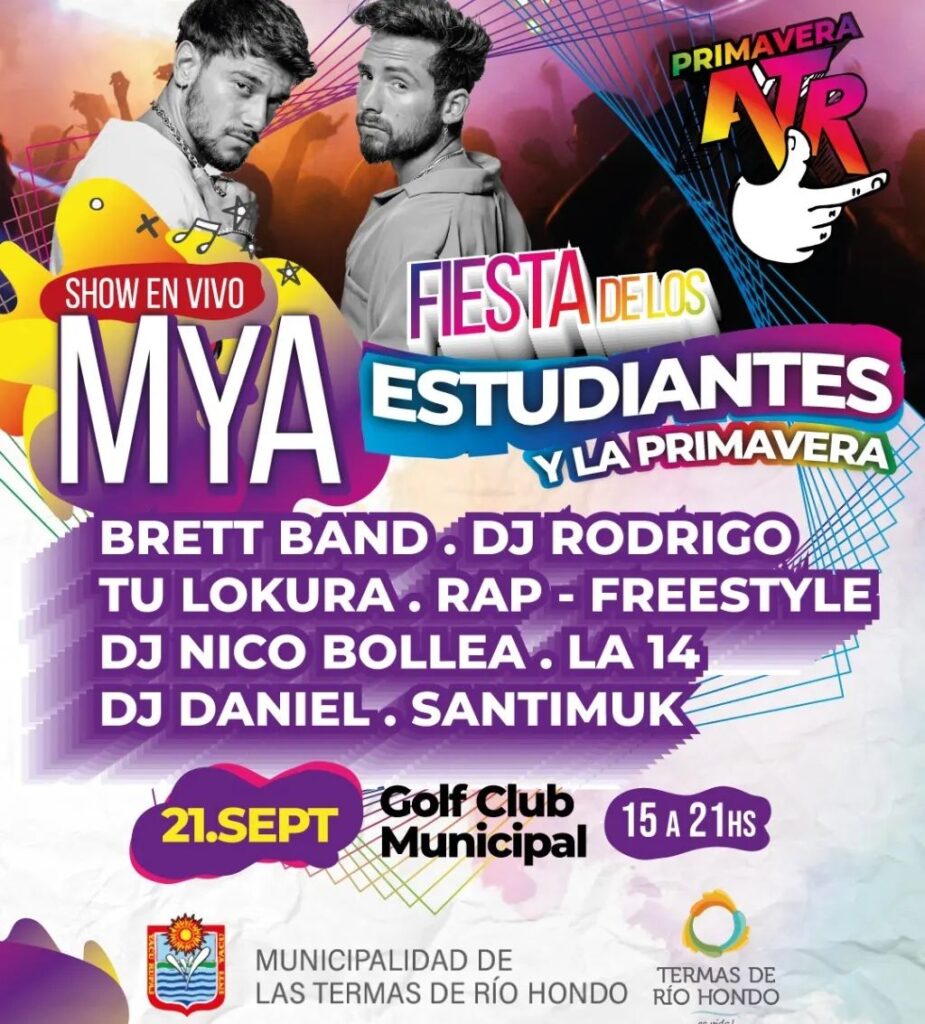El gran evento que cerrará el Septiembre ATR se realizará en el predio del Río Hondo Golf Club y comenzará a partir de las 15 y se extenderá hasta las 21. La juventud podré deleitarse, bailar y disfrutar al ritmo de MYA para todos los estudiantes.