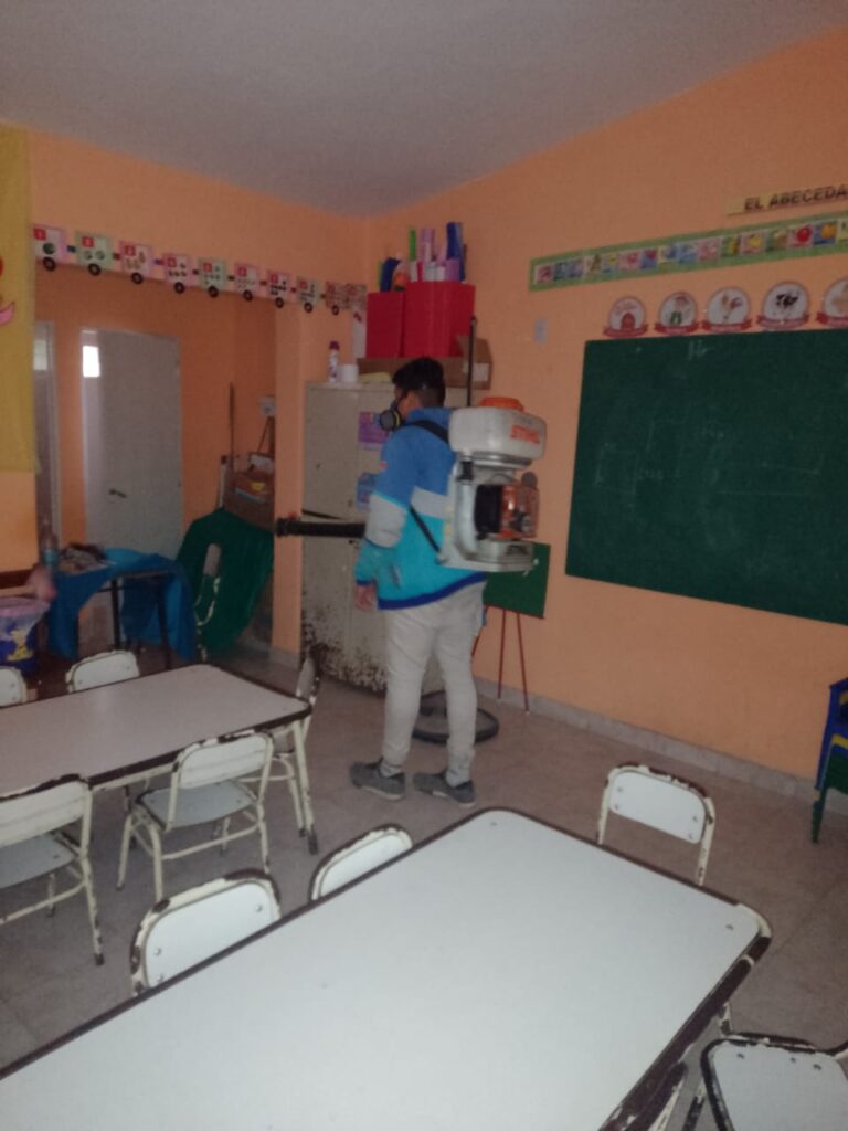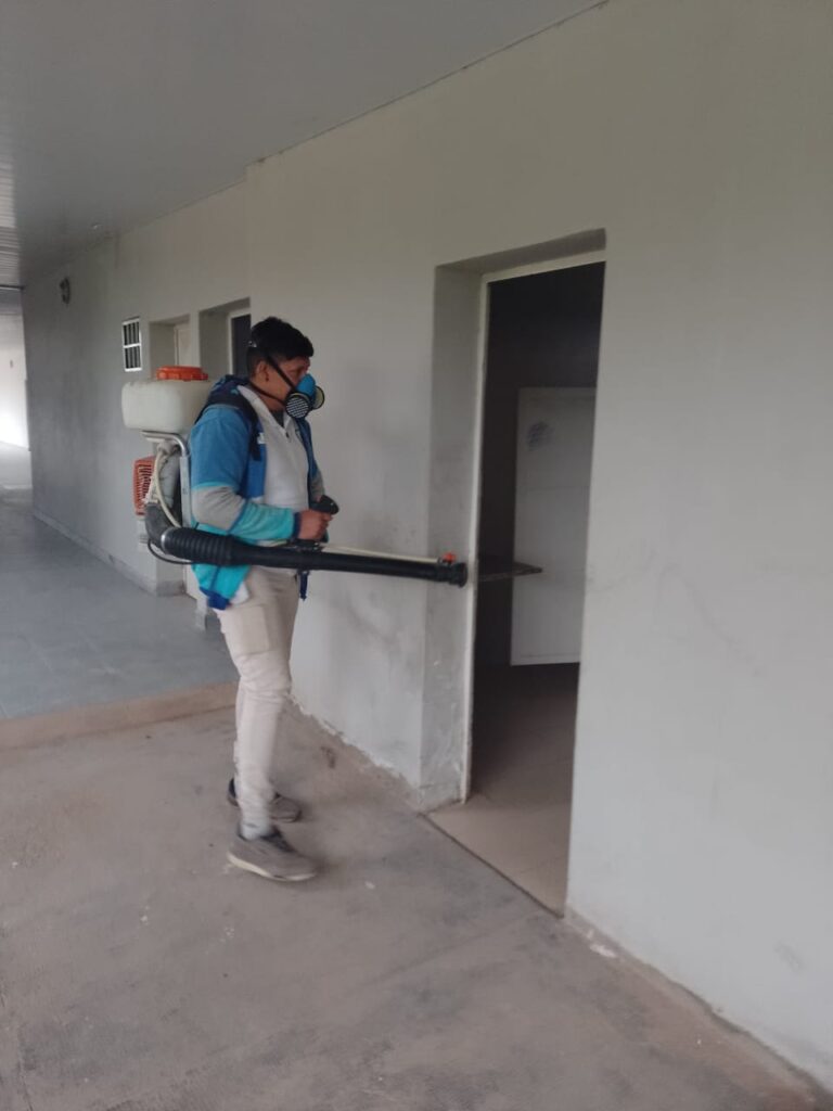 El equipo se encuentra realizando trabajos de fumigación de escuelas, edificios públicos y descacharreo barrial. Es importante que los vecinos puedan eliminar toda clase de recipientes y/o objetos que no usen y que puedan ser espacio para la reproducción del mosquito.