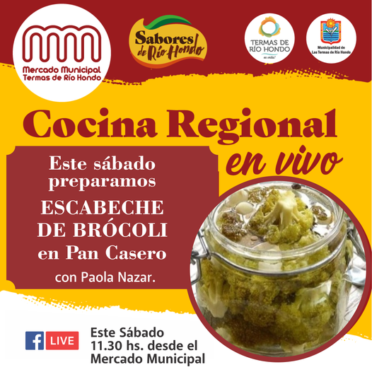 El Mercado Municipal será sede de una nueva edición de Cocina Regional en Vivo con la preparación de “Escabeche de Brócoli en Pan Casero”, a cargo de Paola Nazar.