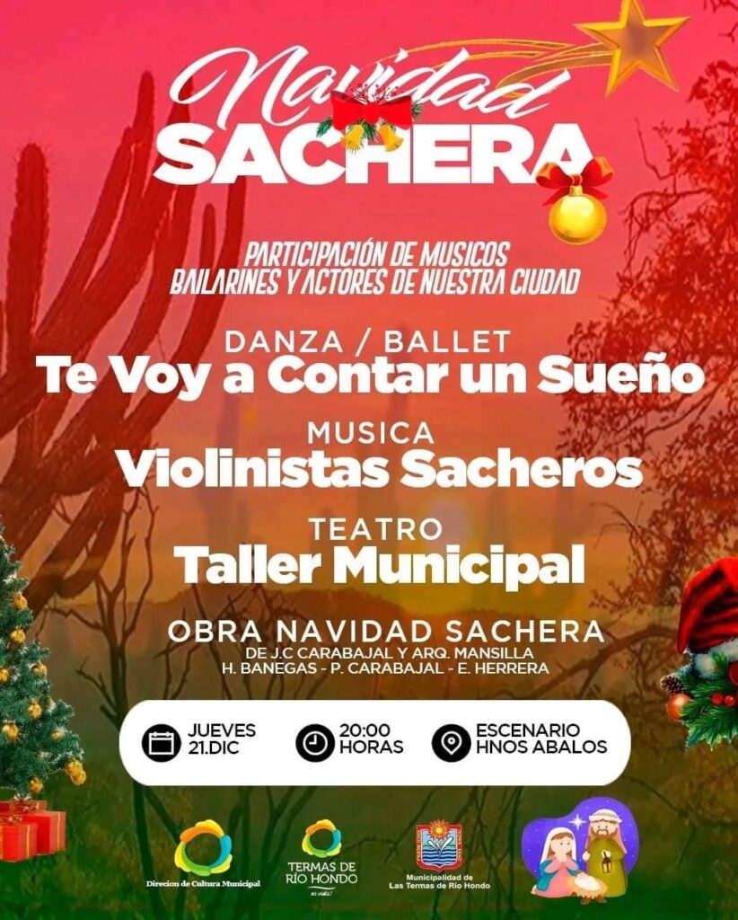Desde la Municipalidad de Las Termas de Río Hondo a través de la Secretaría de Turismo, Cultura y Deportes y la Dirección de Cultura realizará la “Navidad Sachera”.