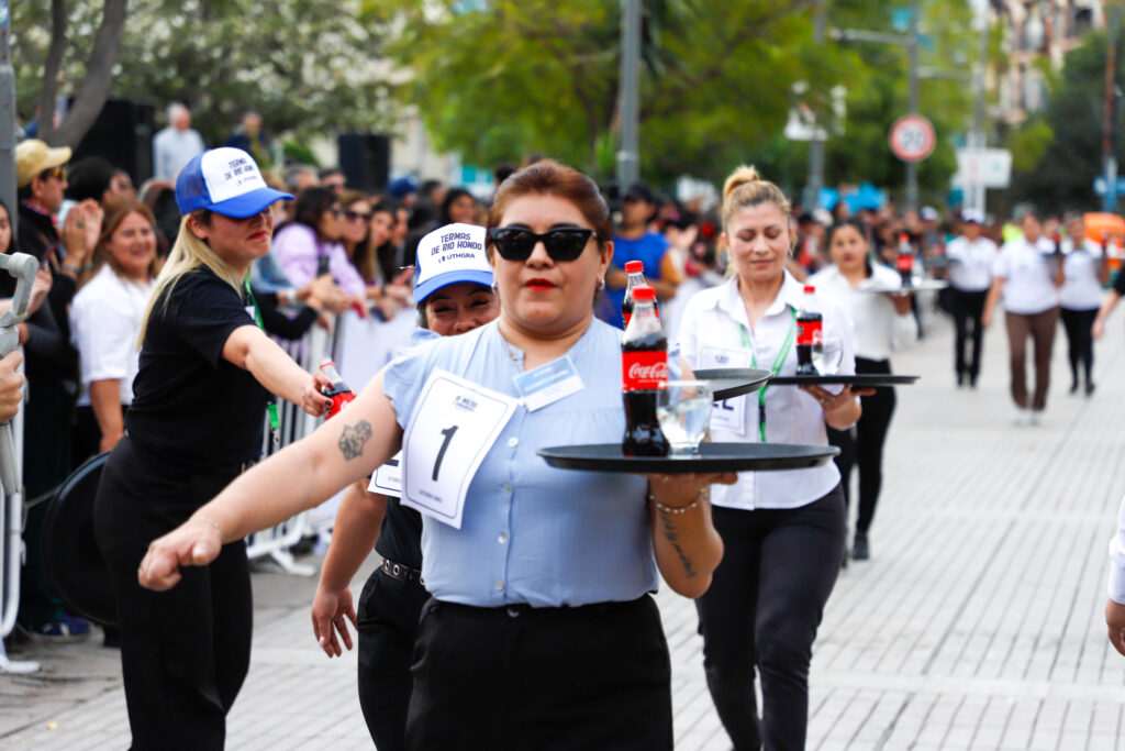 En la explanada de la Plaza San Martín se llevó a cabo una nueva edición de la tradicional Carrera de Mozos y Camareras, una propuesta que conjuga destreza, equilibrio entre trabajadores del sector hotelero y gastronómico.