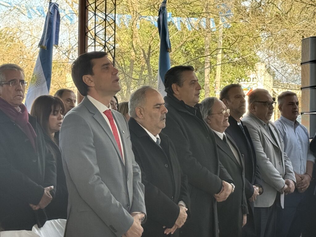 Durante el acto el Mandatario Provincial estuvo acompañado por el Vicegobernador Carlos Silva Neder, el Jefe de Gabinete de Ministros Elías Suárez, el Intendente Jorge Mukdise, la Directora del establecimiento educativo Prof. Sandra Valor y demás autoridades legislativas, municipales y comunidades educativas invitadas.